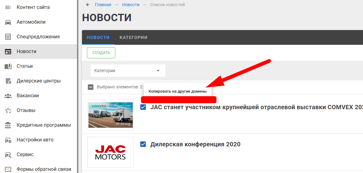 3. Открывается функция «Копировать на другие домены». Кликаем по ней.