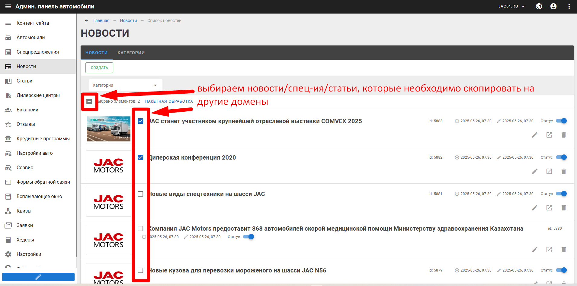1. Выбрать элементы, которые нужно скопировать – через табы или таб «Выделить все»
